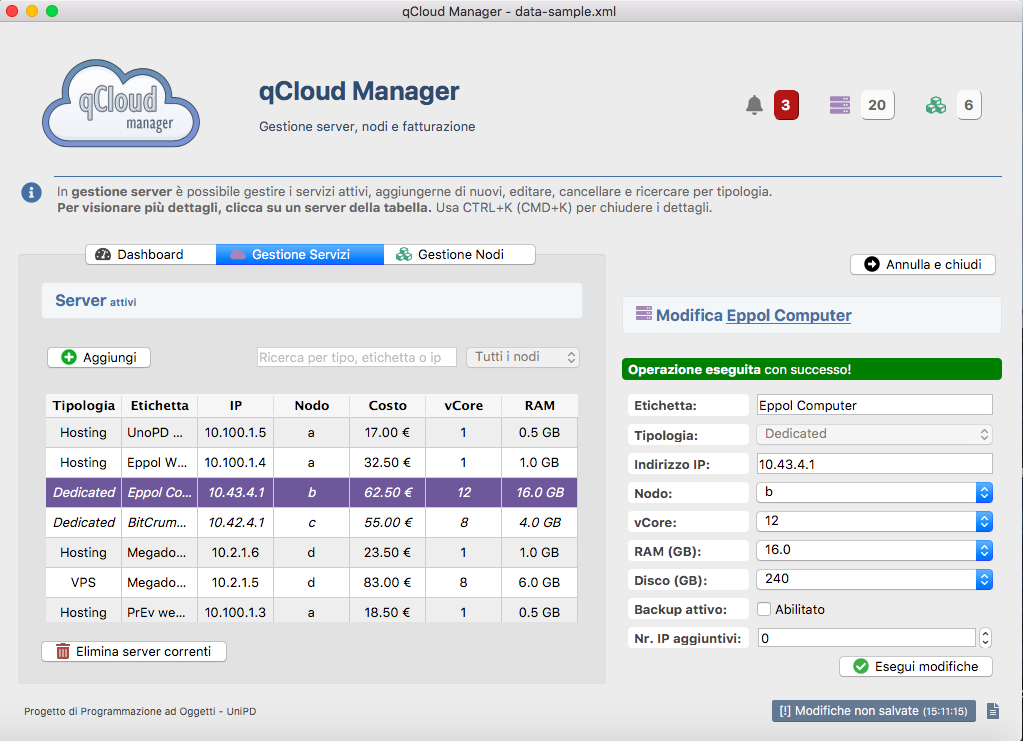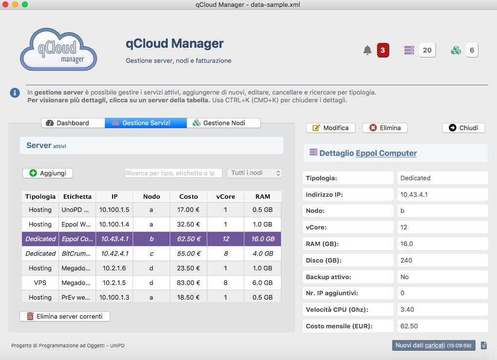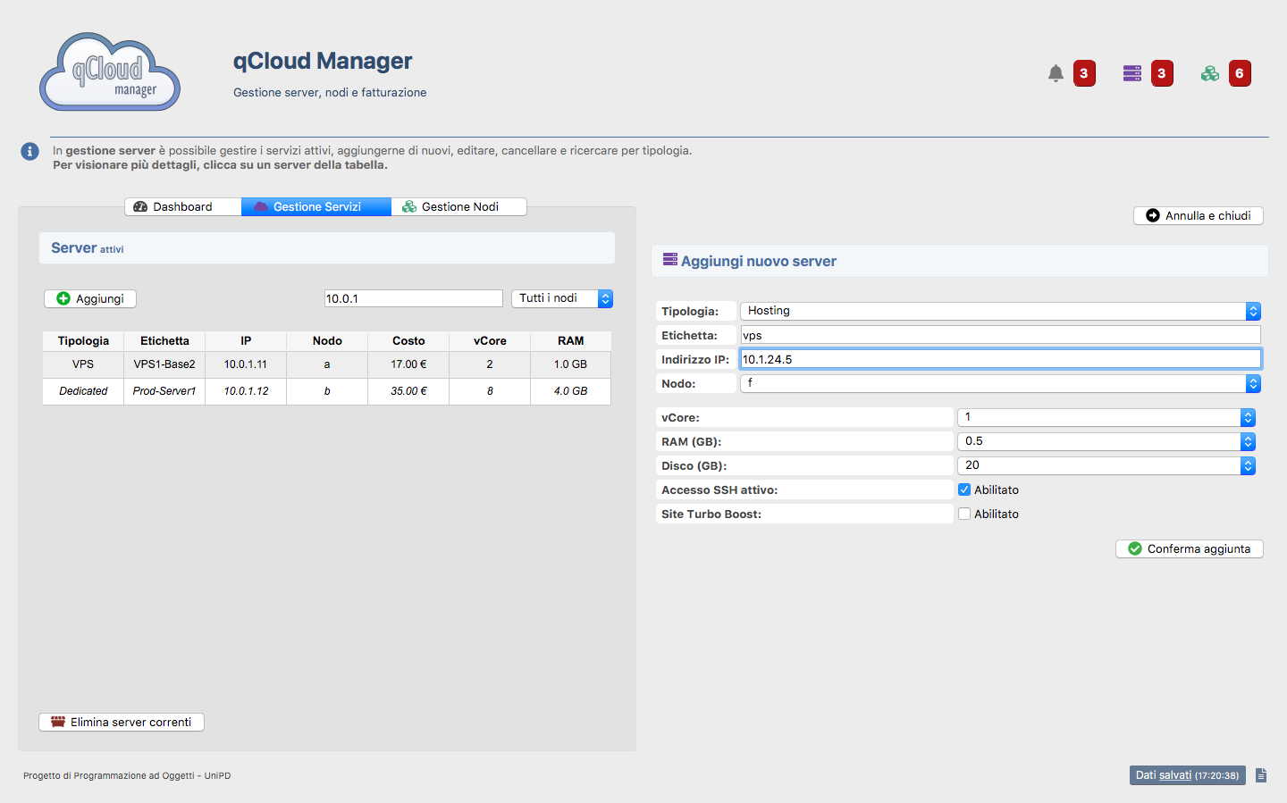 Applicazione per la gestione di server e nodi hardware